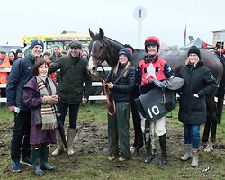Coronation Gold Cup Winner 2026 Grace A Vous Enki 2/5 in largest field for this race in a decade. Wearing the number 10 race number, 10 years old, 10 runs at Larkhill, 10 wins! Winning margin huge.